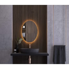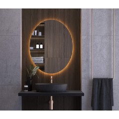 Presentamos IRLANDA, un espejo redondo retroiluminado que apuesta por la sencillez y la pureza de formas. Su diseño sin marco visible potencia una estética limpia y minimalista, donde el protagonismo lo adquiere su suave halo de luz perimetral. La iluminación LED crea un efecto flotante delicado y uniforme que aporta profundidad a la pared y genera una atmósfera cálida y equilibrada. Su silueta redonda suaviza el conjunto del baño y aporta sensación de amplitud, convirtiéndolo en una pieza discreta, elegante y perfectamente integrada en espacios contemporáneos.